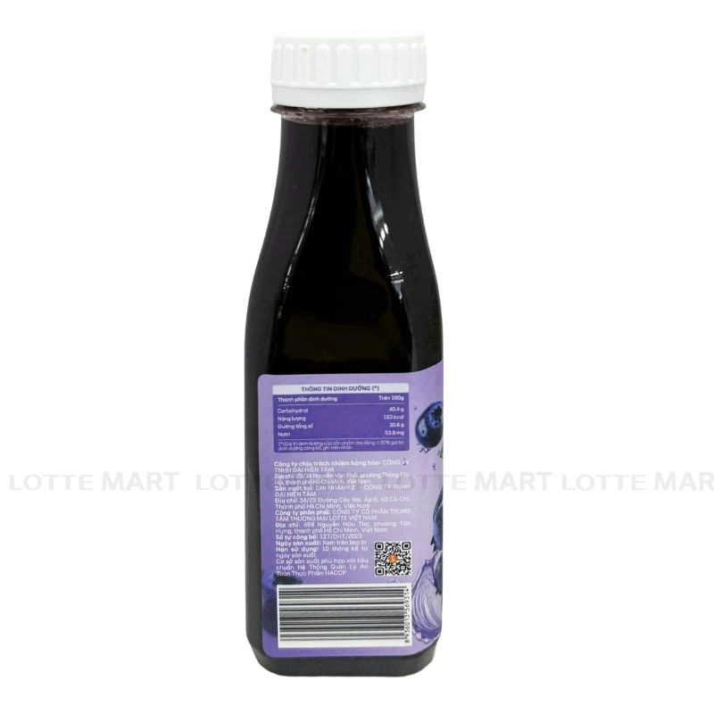 - Việt quất (45%), đường, nước, chất ổn định (INS 1442, INS 440), hương liệu tổng hợp (việt quất), chất điều chỉnh độ acid (INS 330), chất bảo quản (INS 202, INS 211), phẩm màu tổng hợp (INS 124, INS 133), muối.